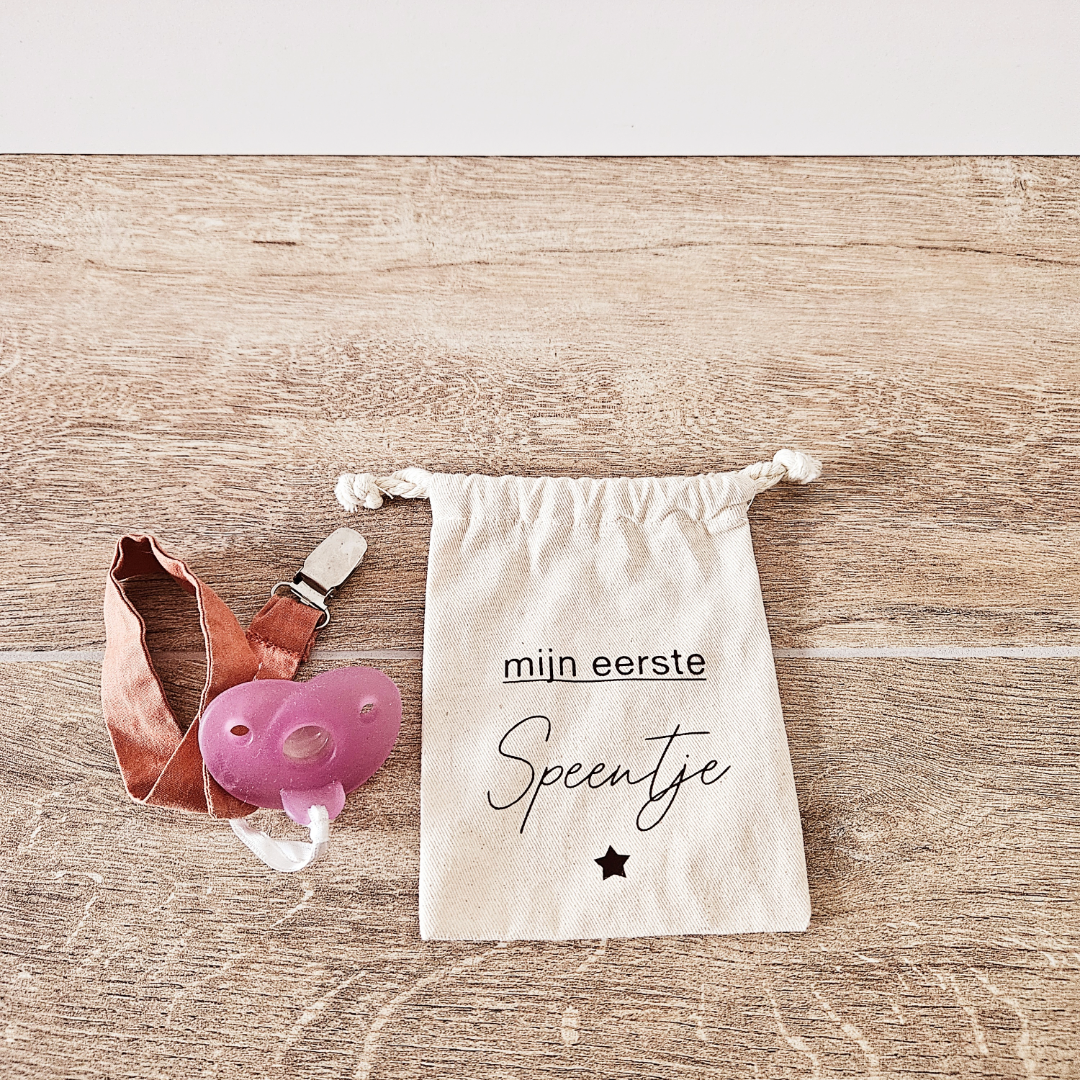 Bewaar met dit bewaarzakje het eerste speentje van je baby. Door de spulletjes in bewaarzakjes te bewaren vind je gemakkelijk je spulletjes terug en blijft alles netjes.